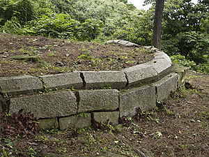 The shrine used to be a rock building, but the Japanese government destroyed it during the second suppression of Oomoto (1935-1945). You can still see the pieces of stone that were dynamited. Under Sumiko Deguchi, the Second Spiritual Leader, Oomoto decided not to rebuild the shrine after the suppression ended, but used the broken stone to terrace the site. They also erected a special stone with calligraphy by Sumiko, stating: “Miroku no O-Kami” – The Great God of Miroku.