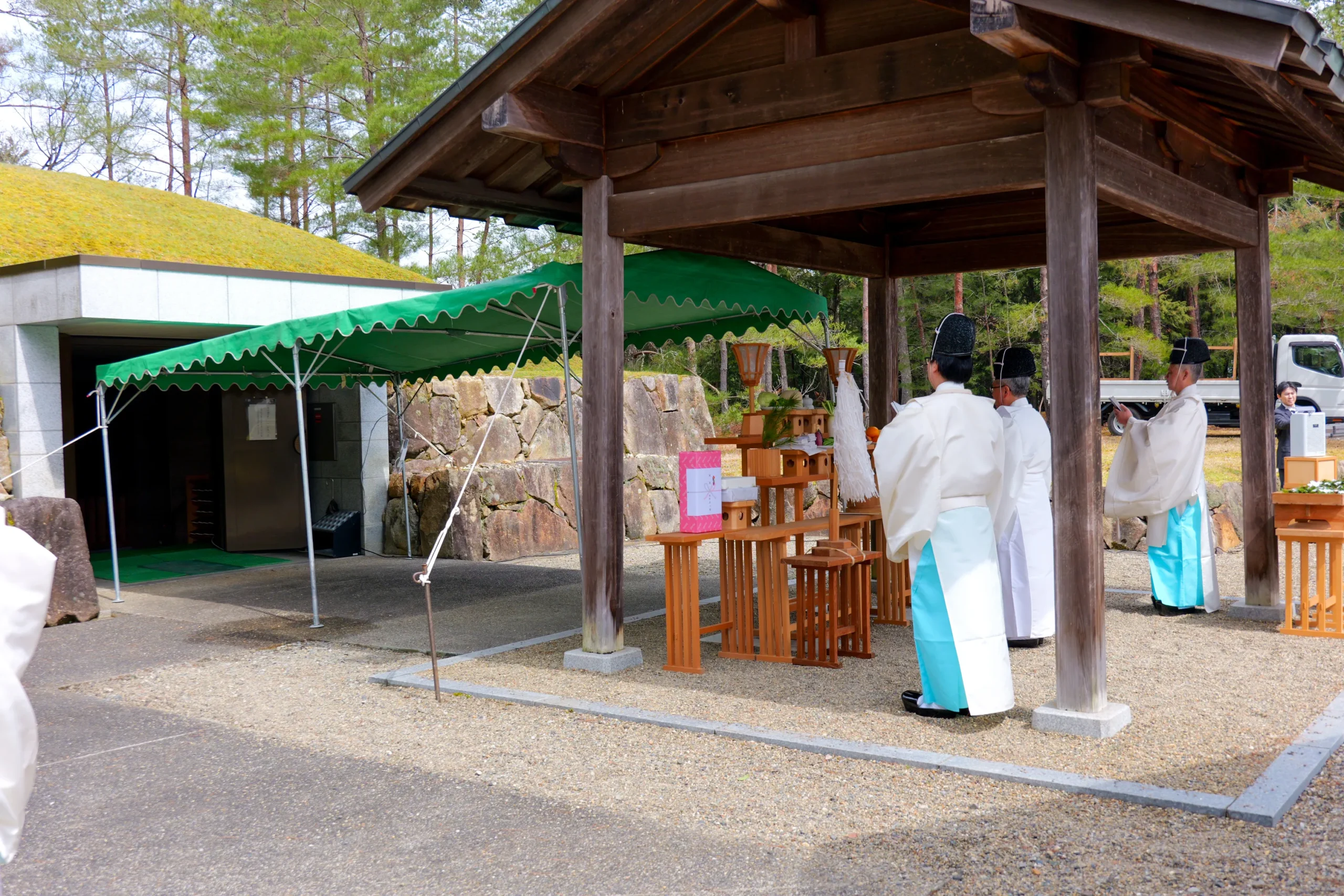 天王平墓地春季合同祭典は、3月20日午前11時から、斎主・成尾陽祭務部長のもと、京都府綾部市天王平彩霞苑・信徒共同墳前で執行された。